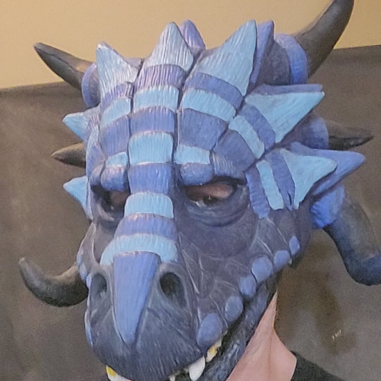 Masque en latex et polyfoam avec intérieur en cuir et mâchoire mobile.